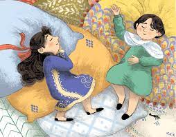 Miriam sets the table with ‘a jug brimming with olive oil, and plates of dried fruits and nuts’ that signify prosperity and good luck. The guests start streaming in and as Miriam serves the delicious moufletas, Jasmine once again comes to her friend’s rescue. They spend the evening engulfed in sounds of music, laughter and shared feasts in the neighborhood. Jasmine, reminded of Ramadan celebrations, invites Miriam to join her next year. Though Miriam and her family immigrate to Israel in the next year, the memories of this night stay with her.