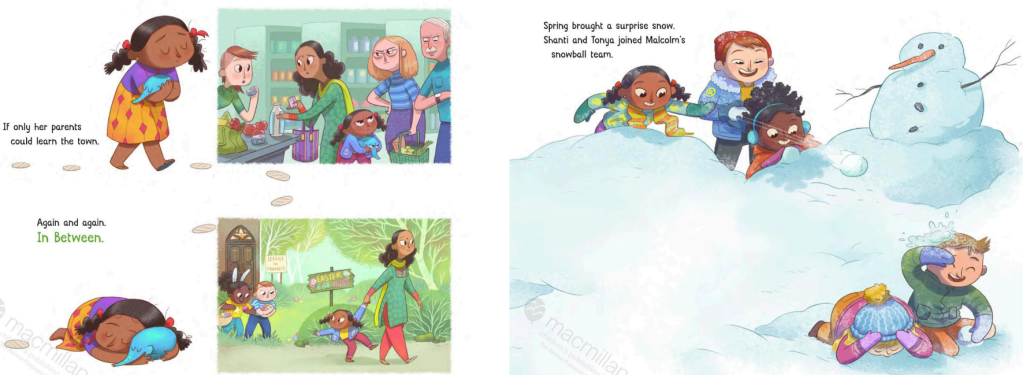 While she incorporates rich multicultural dimensions of Shanti’s life through pan-Indian experiences of biryani, Bollywood and Holi, she also introduces the diversity of the Indian experience with little nods to her Bengali heritage through mentions of Bangla, luchis and her Didu (grandma). I only wish there was a little more exploration of this diversity. In the vein of books such as Same Same but Different, Home is in Between expands the conversation of immersion in a new place and culture.